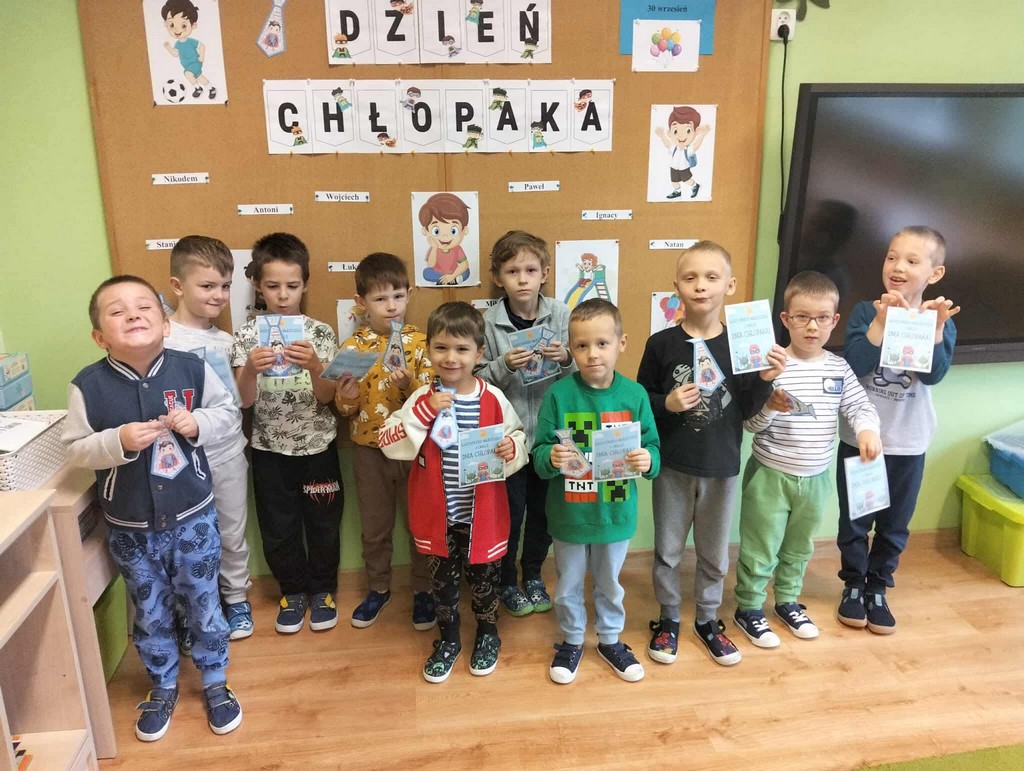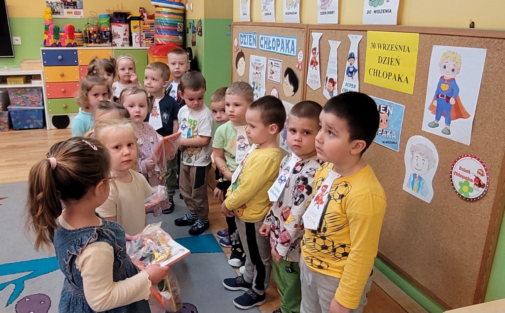 30 września w naszym przedszkolu obchodziliśmy Dzień Chłopaka. Były gry i zabawy, przygotowane przez nauczycielki specjalnie na tę okazję. Wszyscy chłopcy z dumą prezentowali swoje odznaki i upominki. Cała grupa świetnie się bawiła, spędzając ten dzień w wyjątkowy sposób. Serdecznie dziękujemy Radzie Rodziców za przygotowanie niespodzianek, które sprawiły dzieciom wiele radości.