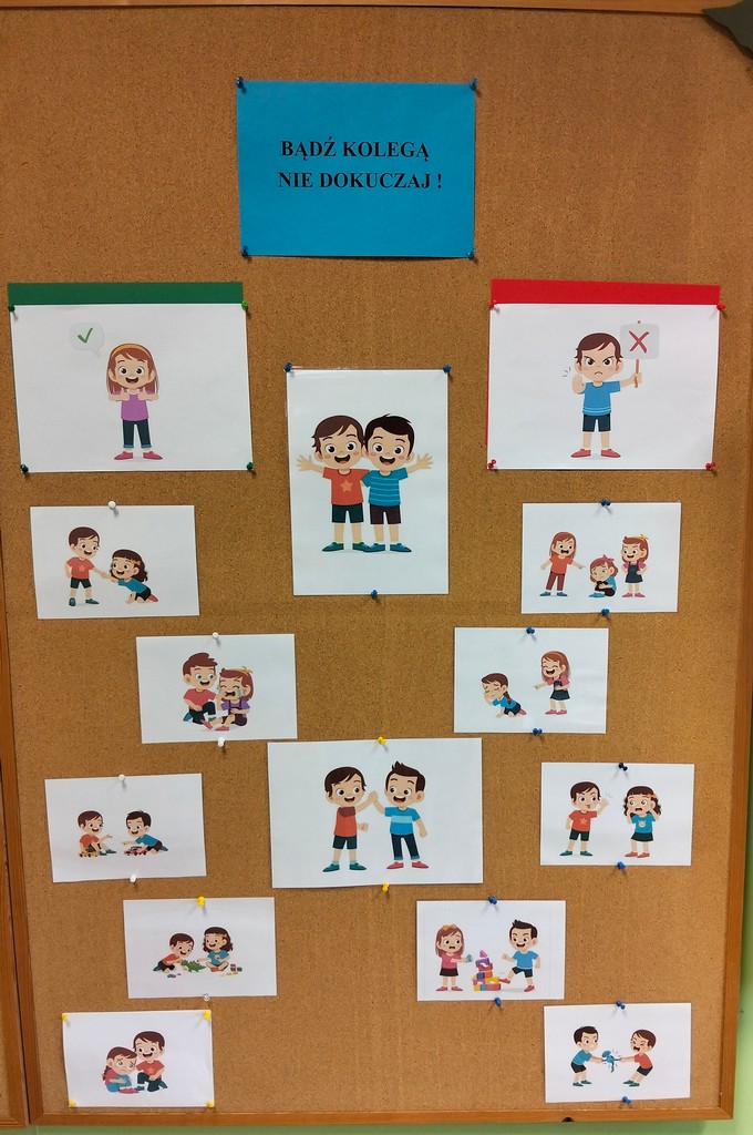 W czasie tygodnia dzieci pracowały z obrazkami przedstawiającymi zachowania życzliwe i negatywne. Zwracano uwagę na okazywanie empatii względem kolegów oraz pozytywne zachowania społeczne. Wyjaśniano także co oznacza dokuczanie oraz jakie mogą być jego skutki. Na koniec układały obrazki dzieląc je według zachowań pozytywnych oraz tych, którym mówimy "stop". Rozmawiały o tym, że każdy z nas jest wyjątkowy i wartościowy. bawiły się w gry integracyjne wiedząc, że uśmiech to najlepszy sposób na budowanie dobrych relacji