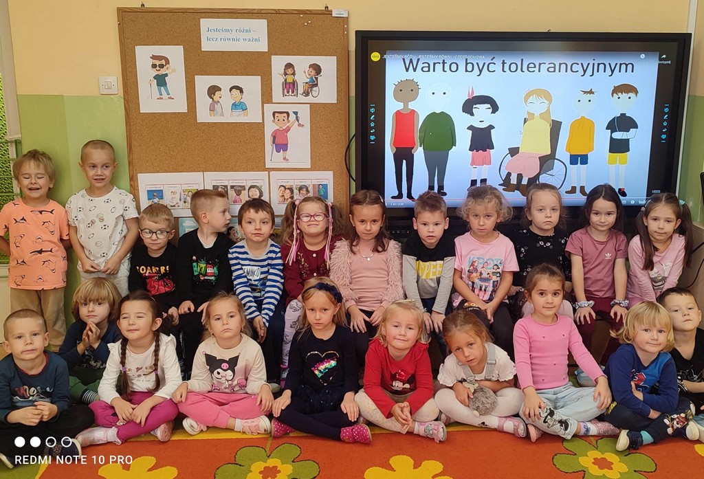 Był to czas pełen zabaw uczących dzieci akceptacji i tolerancji oraz poszanowania praw innych. ,,To ja” tym tematem Kangurki rozpoczęły tydzień od rysowania siebie. Oglądały zdjęcia różnych ludzi wskazując podobieństwa i różnice. Przez cały ten okres dzieci uczyły się tolerancji wobec innych. Kształtowały poczucie własnej wartości. wspólnie wykonały też plakat „Jesteśmy różni lecz równie ważni” który ozdobił salę i przypomina o mocy pozytywnych relacji koleżeńskich.