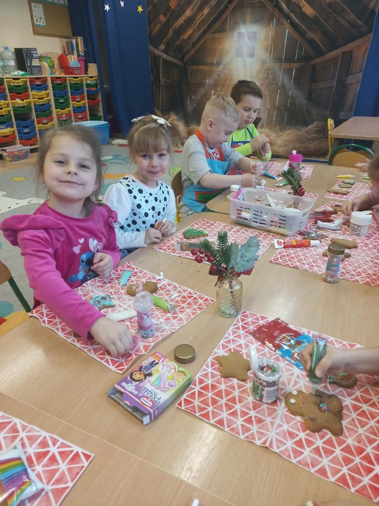Upieczone przez dzieci pierniki znalazły się później na naszych przedszkolnych wigilijnych stołach. Mniam!