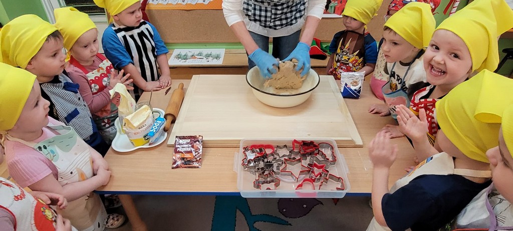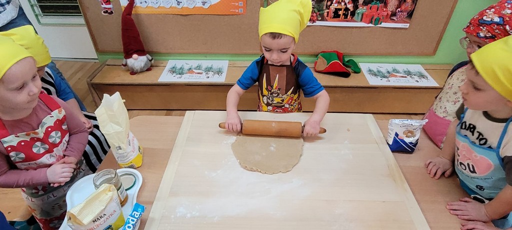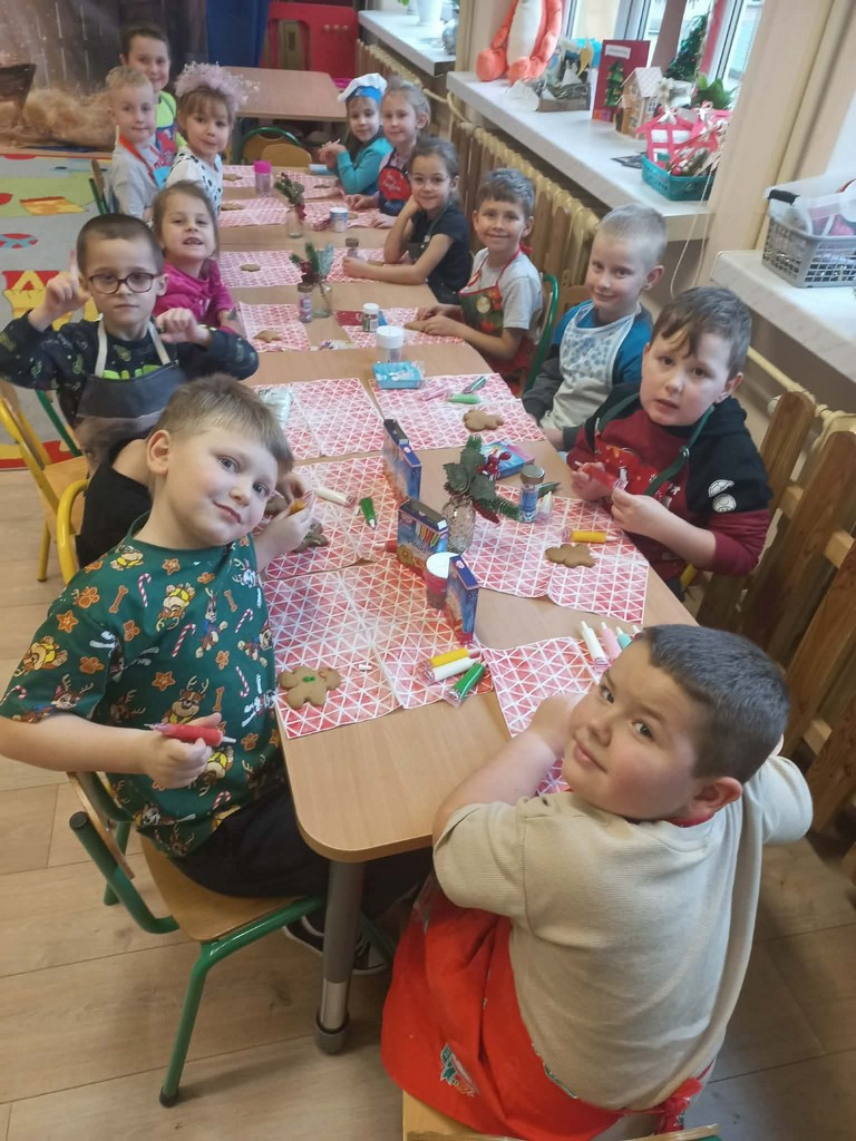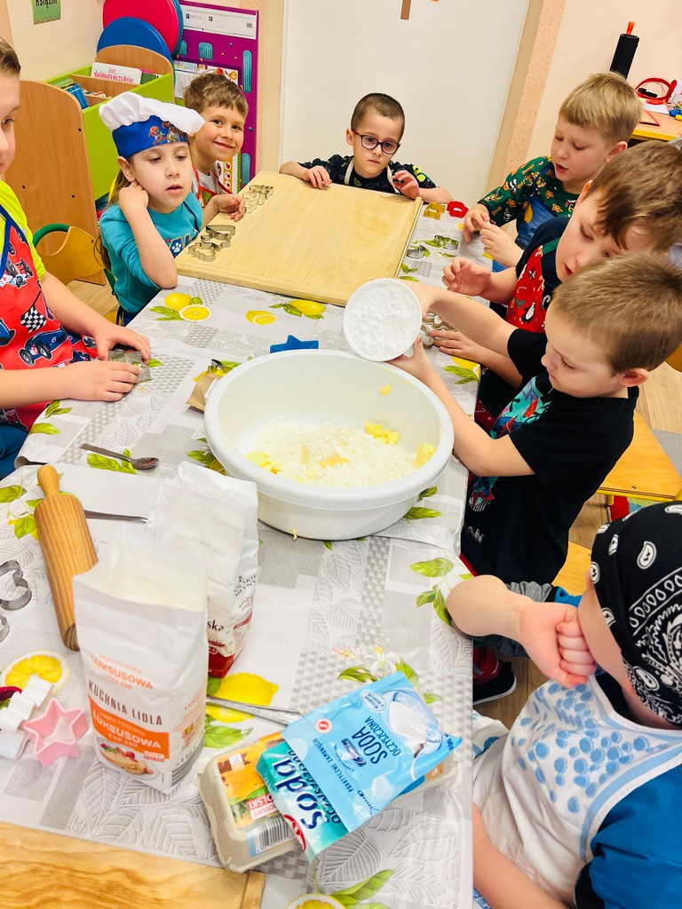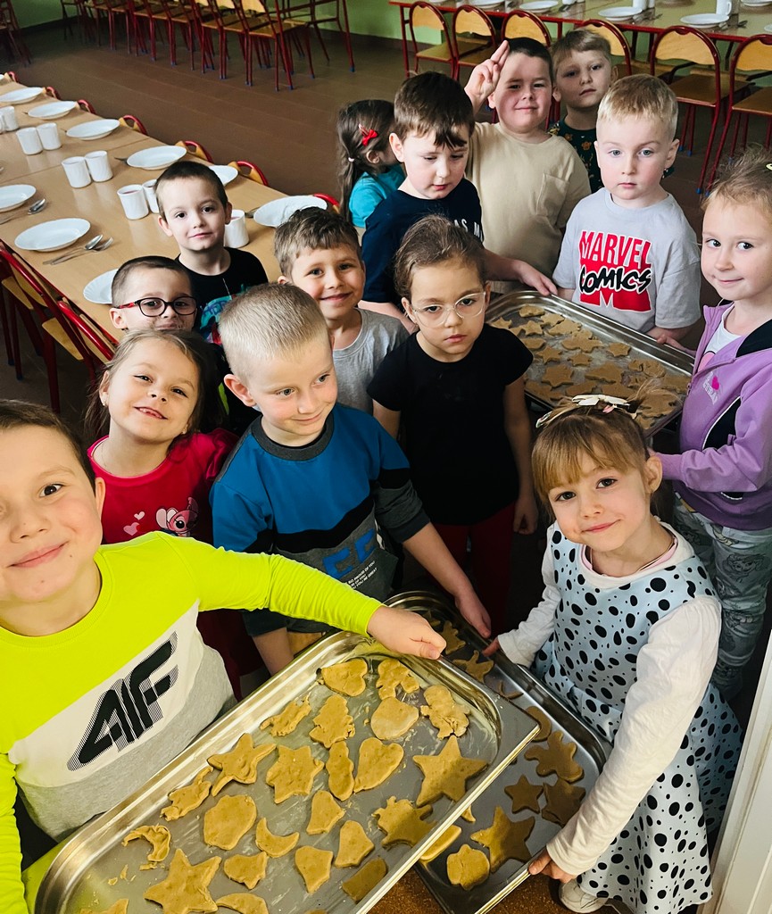 W naszym przedszkolu zapanowała prawdziwie świąteczna atmosfera! Dzieci wszystkich grup wzięły udział w wyjątkowych zajęciach – wspólnym pieczeniu pierników. Już od samego rana w salach unosił się cudowny zapach korzennych przypraw, który wprowadził wszystkich w radosny, zimowy nastrój.