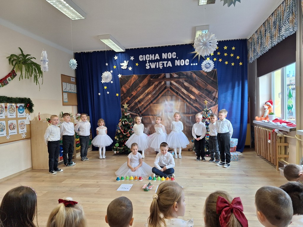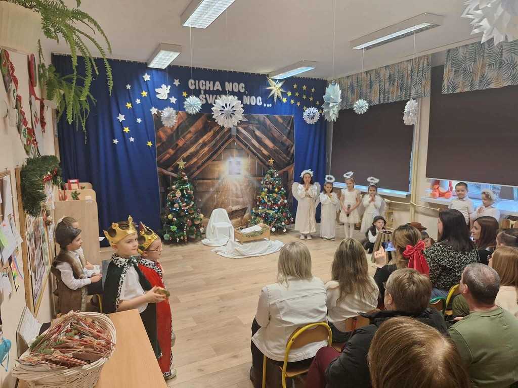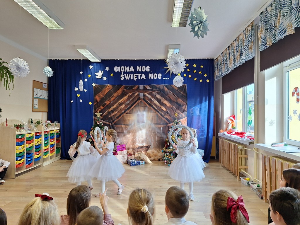 Szczególnym wydarzeniem były występy przedszkolaków dla rodziców. Dzieci z ogromnym zaangażowaniem zaprezentowały wiersze, piosenki oraz tańce o tematyce świątecznej. Grupy Sówek i Kangurków przedstawiły wyjątkowe jasełka. Był to piękny czas wspólnego przeżywania emocji i dumy z małych artystów.