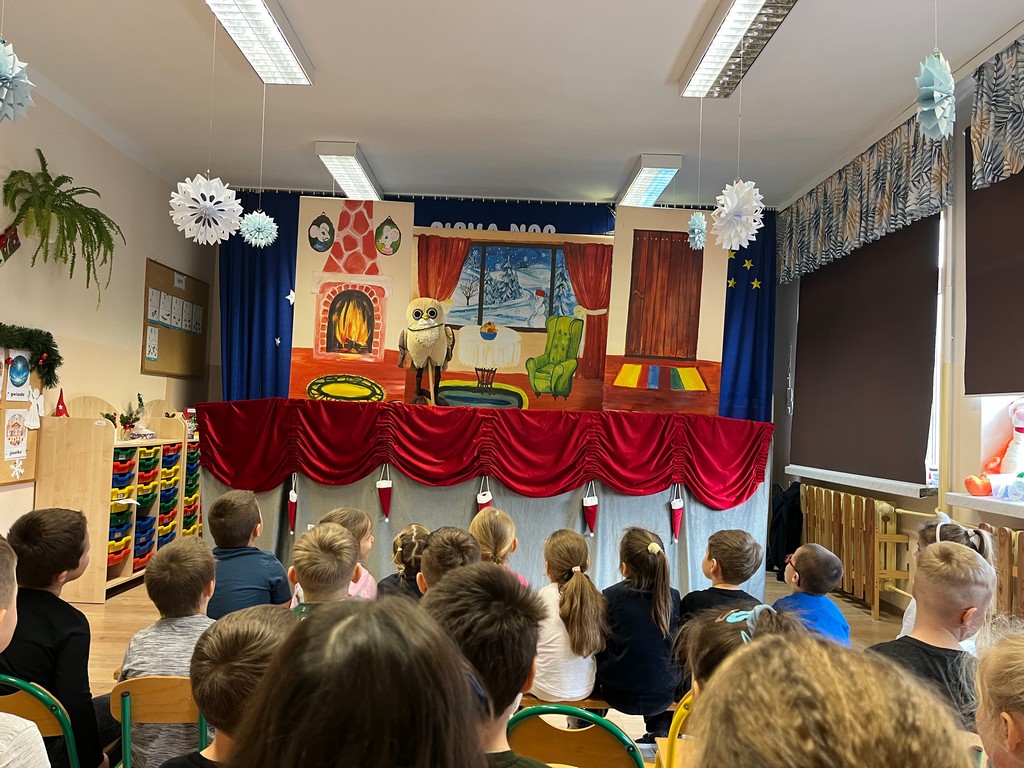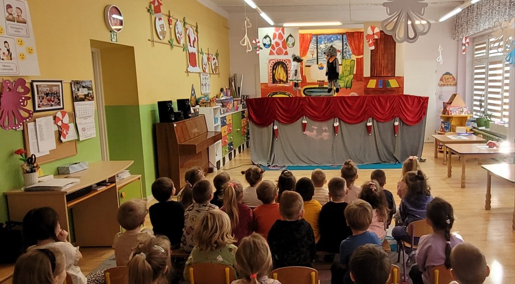 W ramach przedświątecznych wydarzeń dzieci obejrzały także spektakl teatralny pt. „Opowieść wigilijna”. Przedstawienie w przystępny sposób przybliżyło wartości takie jak dobroć, wrażliwość i pomaganie innym, wzbudzając duże zainteresowanie wśród przedszkolaków.