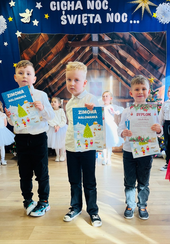 W środę odbyło się także wręczenie nagród laureatom konkursu na świąteczną ozdobę tradycyjną. Wszystkie dzieci otrzymały pamiątkowe dyplomy i upominki, a ich dzieła zdobią teraz przedszkolną choinkę.