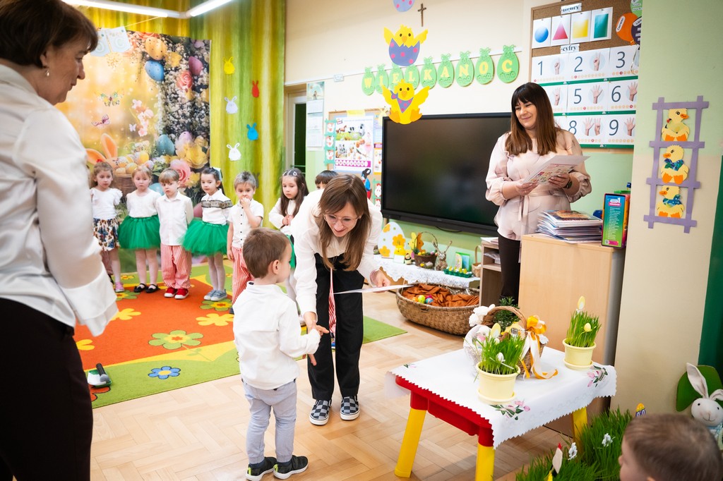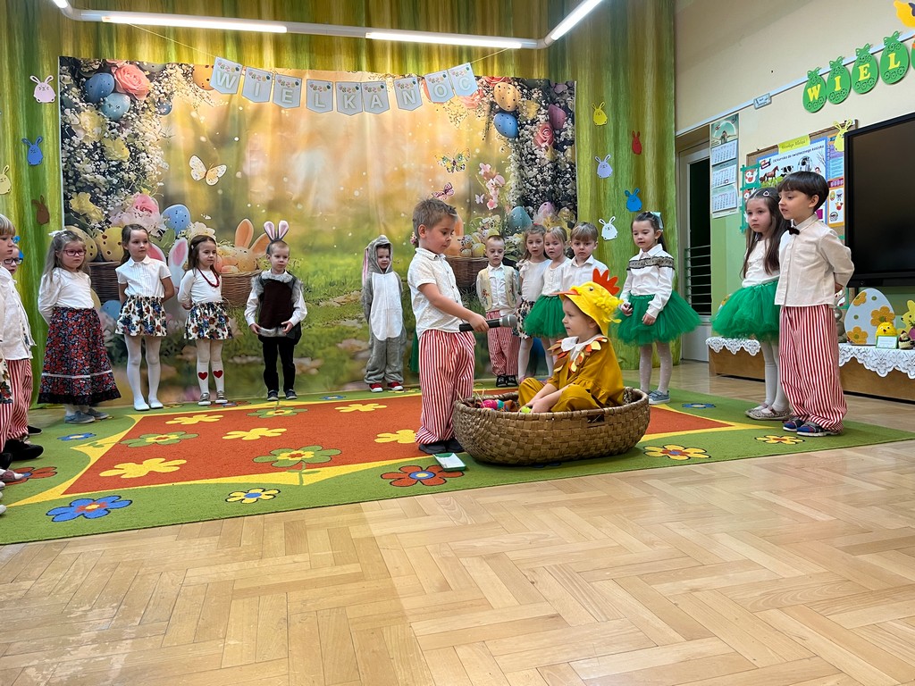 Dzieci z zaangażowaniem zaprezentowały przygotowany program artystyczny, który spotkał się z dużym uznaniem zaproszonych gości. Istotnym elementem spotkania był również konkurs na najpiękniejszą pisankę, w którym uczestnicy wykazali się ogromną kreatywnością, starannością oraz pomysłowością. Powstałe prace zachwycały różnorodnością form i bogactwem zdobień, stanowiąc piękne nawiązanie do wielkanocnych tradycji.