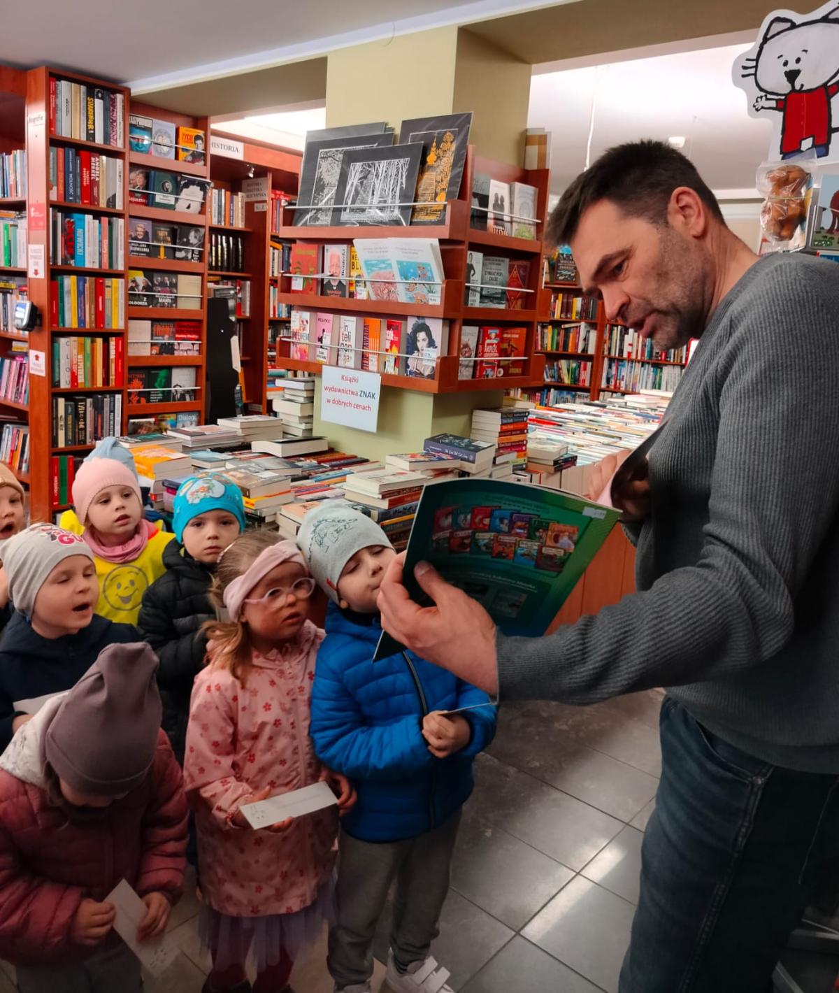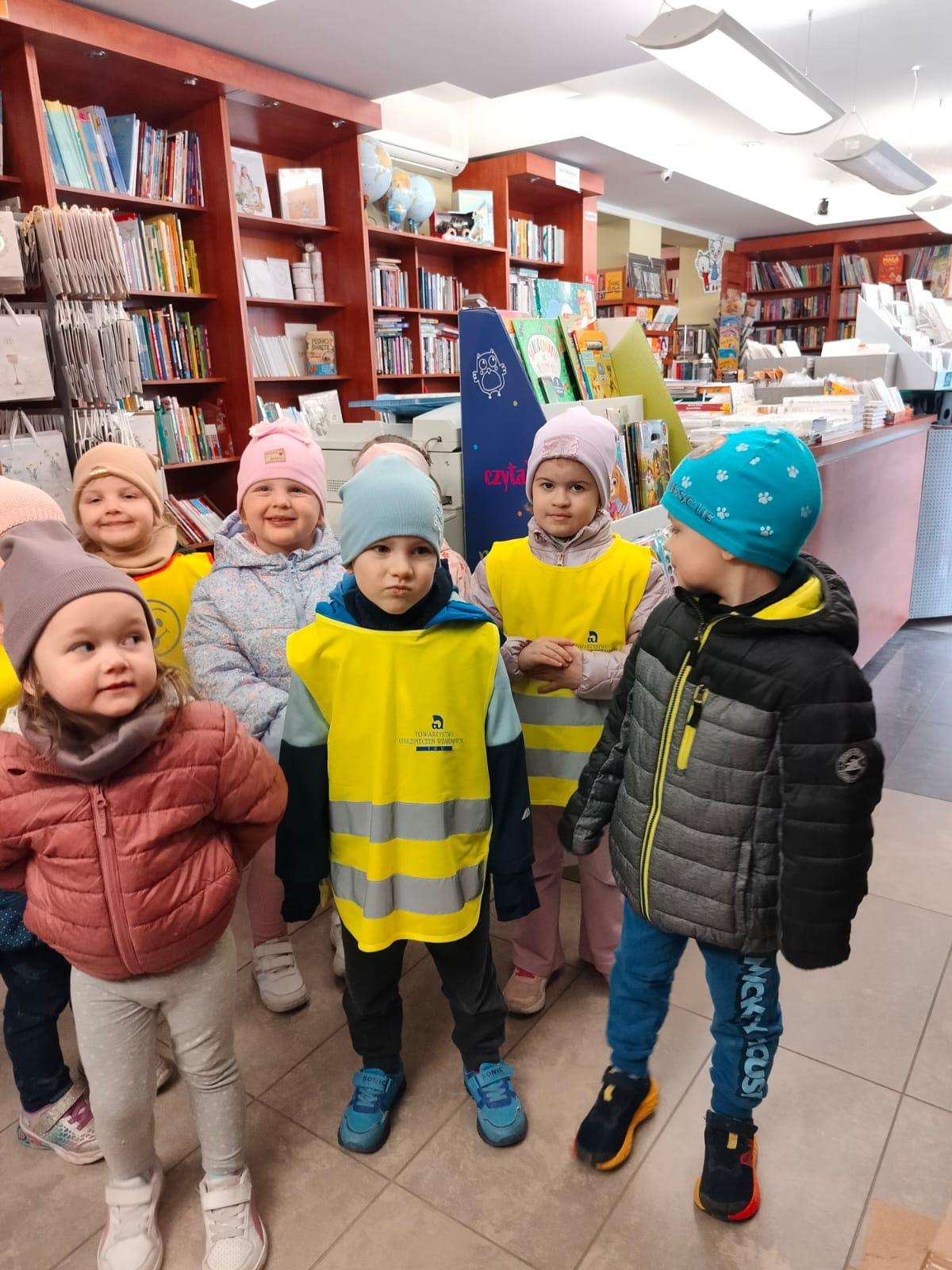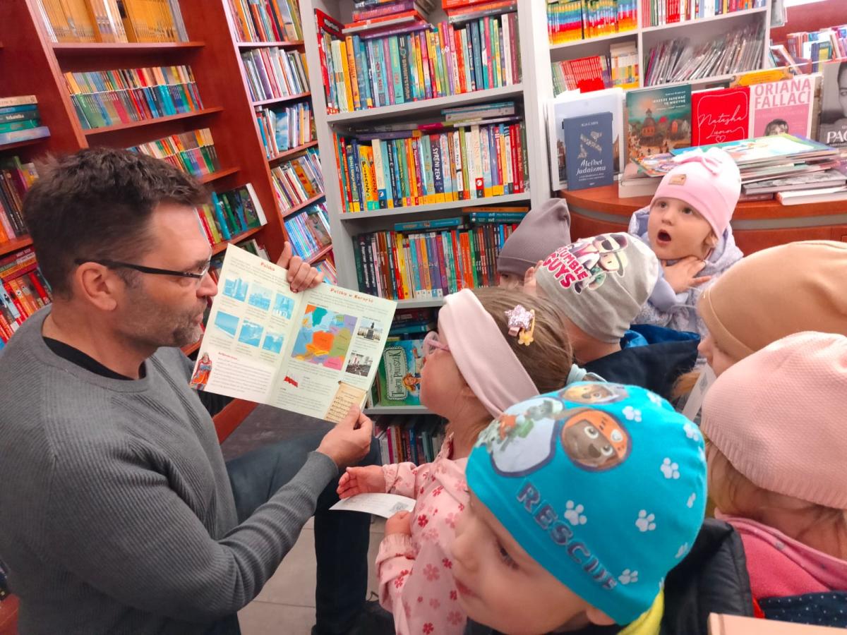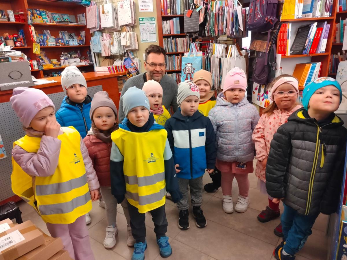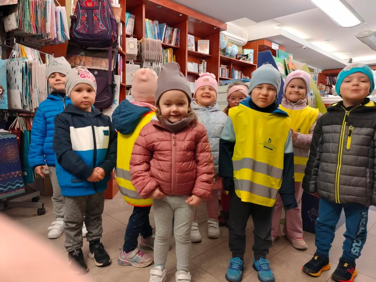 W związku z przerabianą tematyką tygodnia pt. "Zaczytani, zasłuchani" przedszkolaki z grupy "Misiów" wybrały się na wycieczkę do księgarni "Mieszko". Dzieci z zaciekawieniem obserwowały pracę księgarza, przeglądały publikacje dla dzieci i każde zakupiło wybraną przez siebie książeczkę. Na pamiątkę wizyty każde dziecko otrzymało zakładkę do książki i "miarkę".